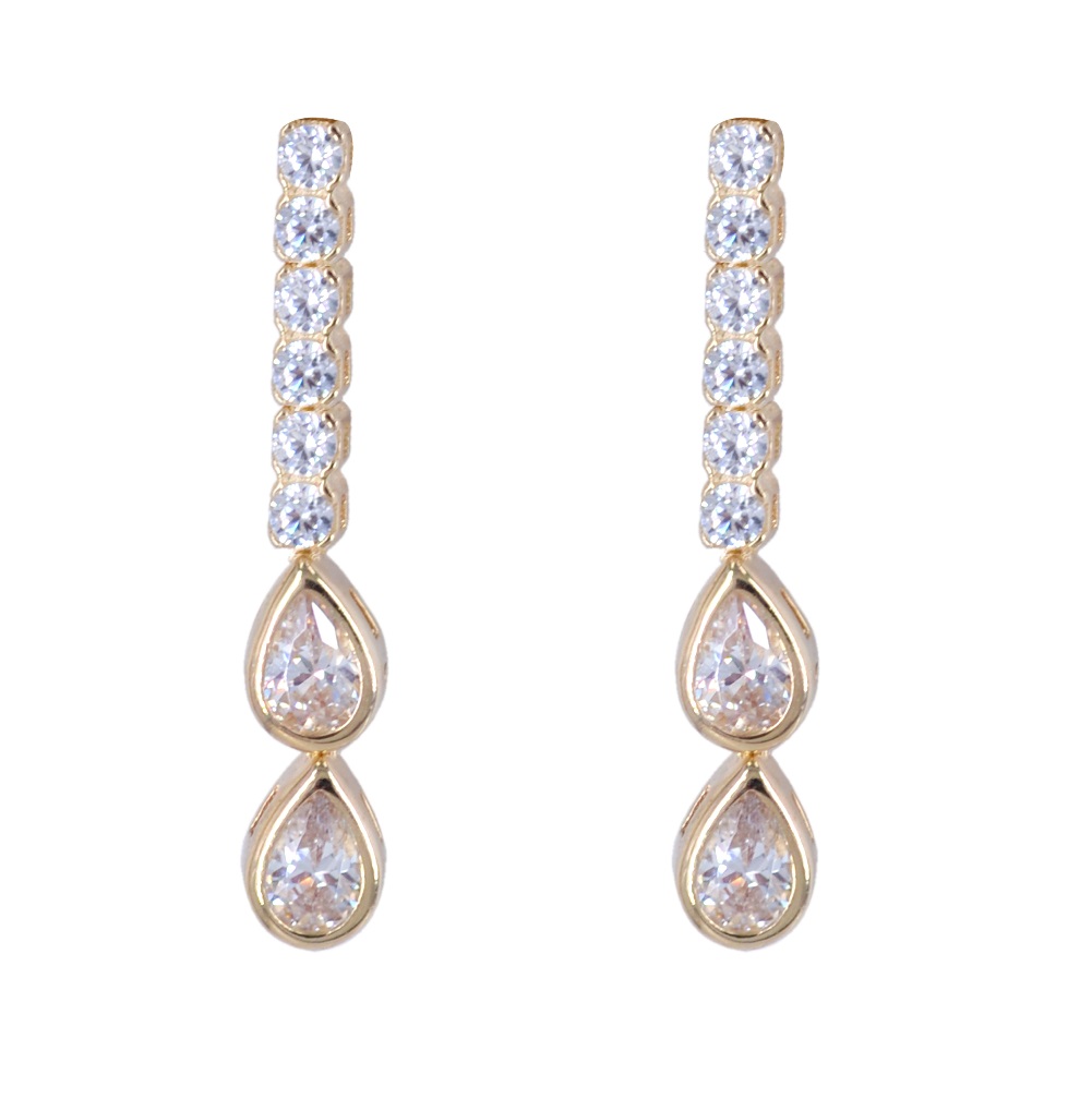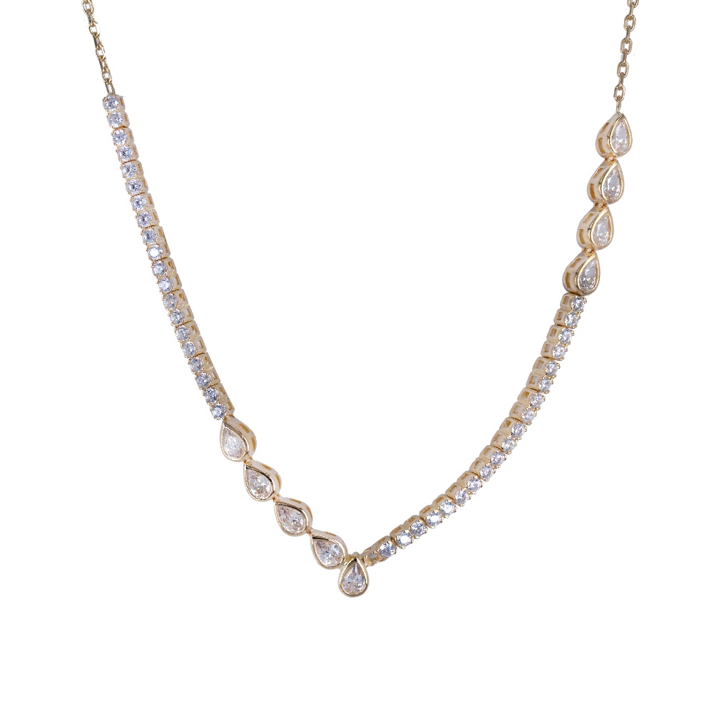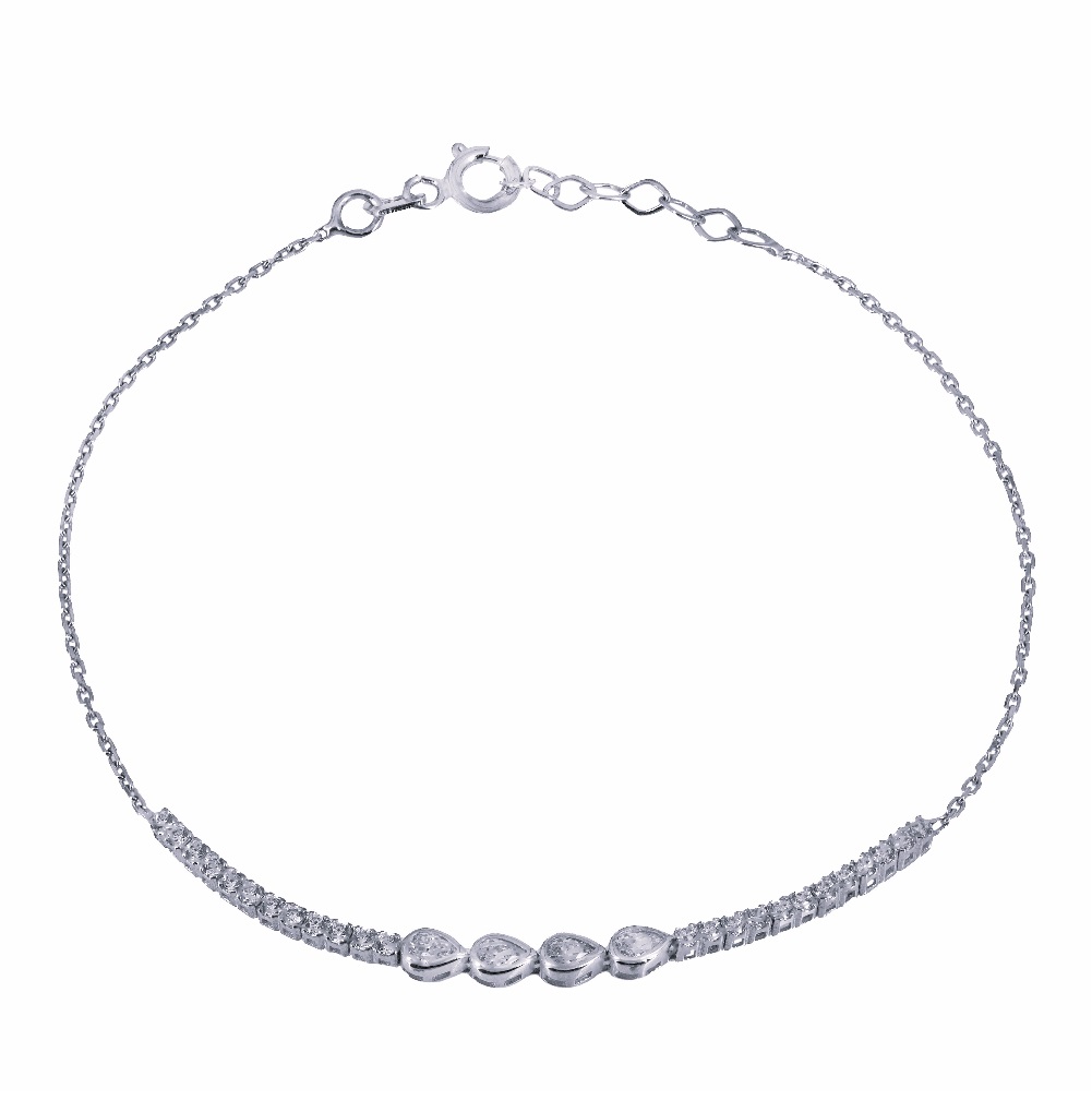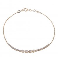 Χρυσό βραχιόλι 14 Καρατίων με ιδιαίτερο μοντέρνο σχέδιο από μονή σειρά με ζιργκόν Swarovski η οποία συνεχίζει με σειρά πετρών σε σχέδιο δάκρυ ζιργκόν Swarovski.