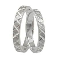 Λευκόχρυση βέρα γάμου και αρραβώνα 9 καρατίων και πλάτος 3mm, σε μοντέρνο σχέδιο με σκαλιστή επιφάνεια πάνω στην οποία σχηματίζονται ρόμβοι με ματ φινίρισμα.
