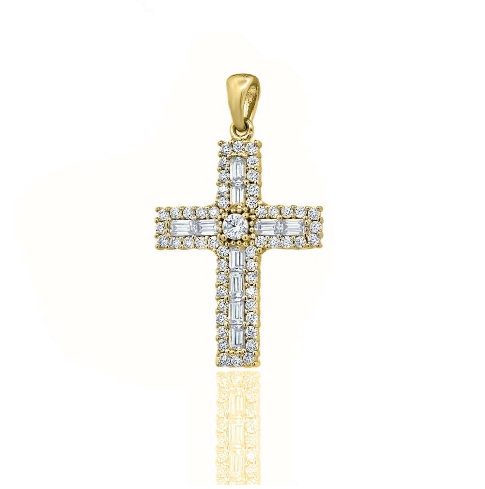 Χρυσός Σταυρός 14 Καράτια με Λευκά Ζαφείρια 45175-24141YMET