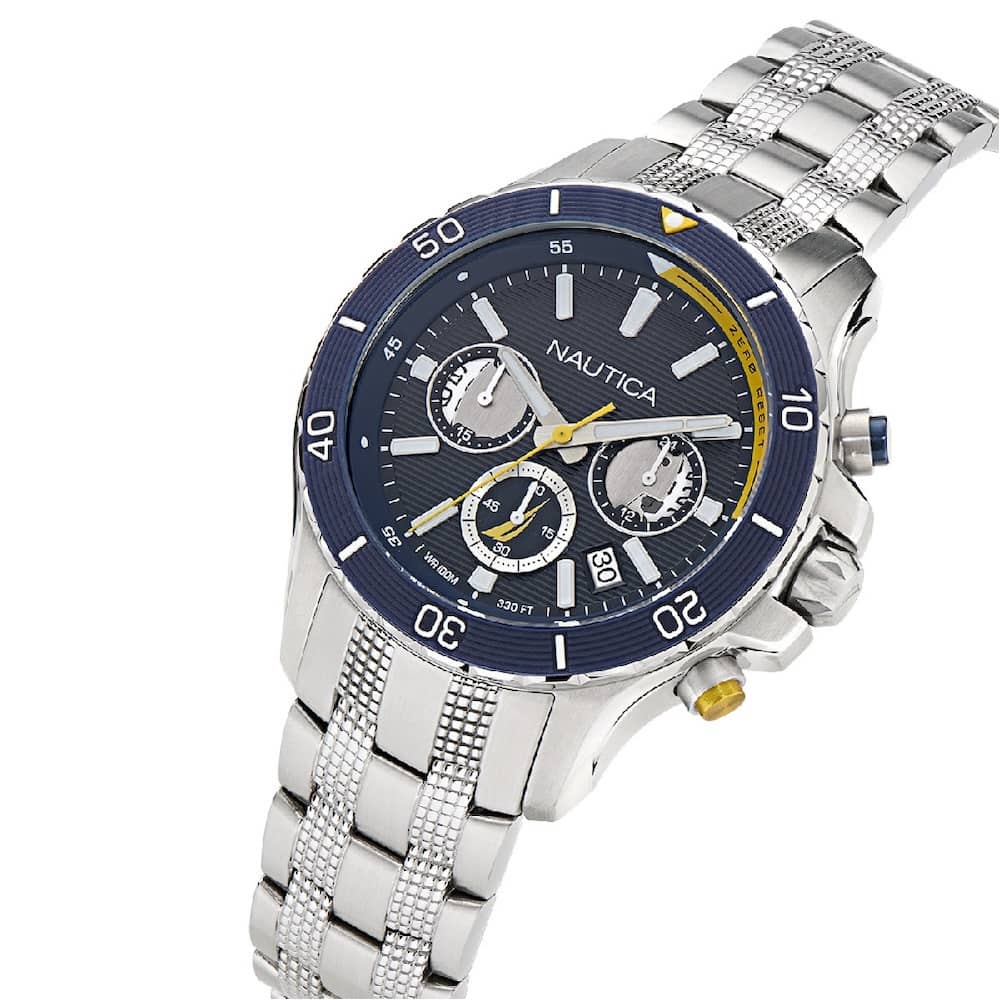 Κάσα: Ασημί ανοξείδωτο ατσάλι με μπλε στεφάνη