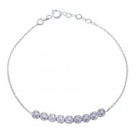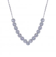 Λευκόχρυσο κολιέ 14 Καρατίων, με ιδιαίτερο μοντέρνο σχέδιο με μονή σειρά ροζέτα πέτρες ζιργκόν Swarovski.