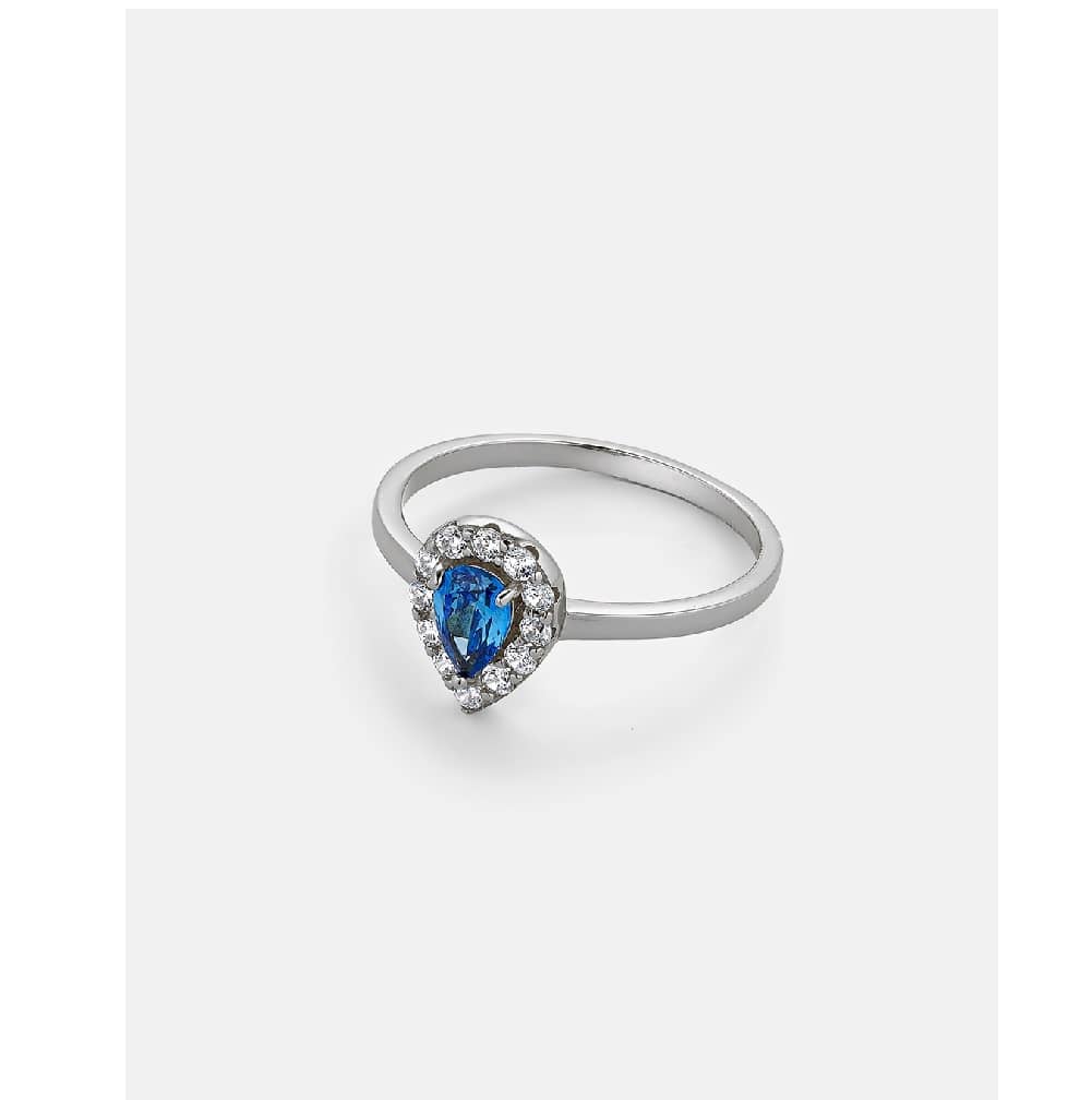 Vogue Δαχτυλίδι με μπλε zircon σε σχήμα δάκρυ από επιροδιωμένο Ασήμι 925° 20178554123