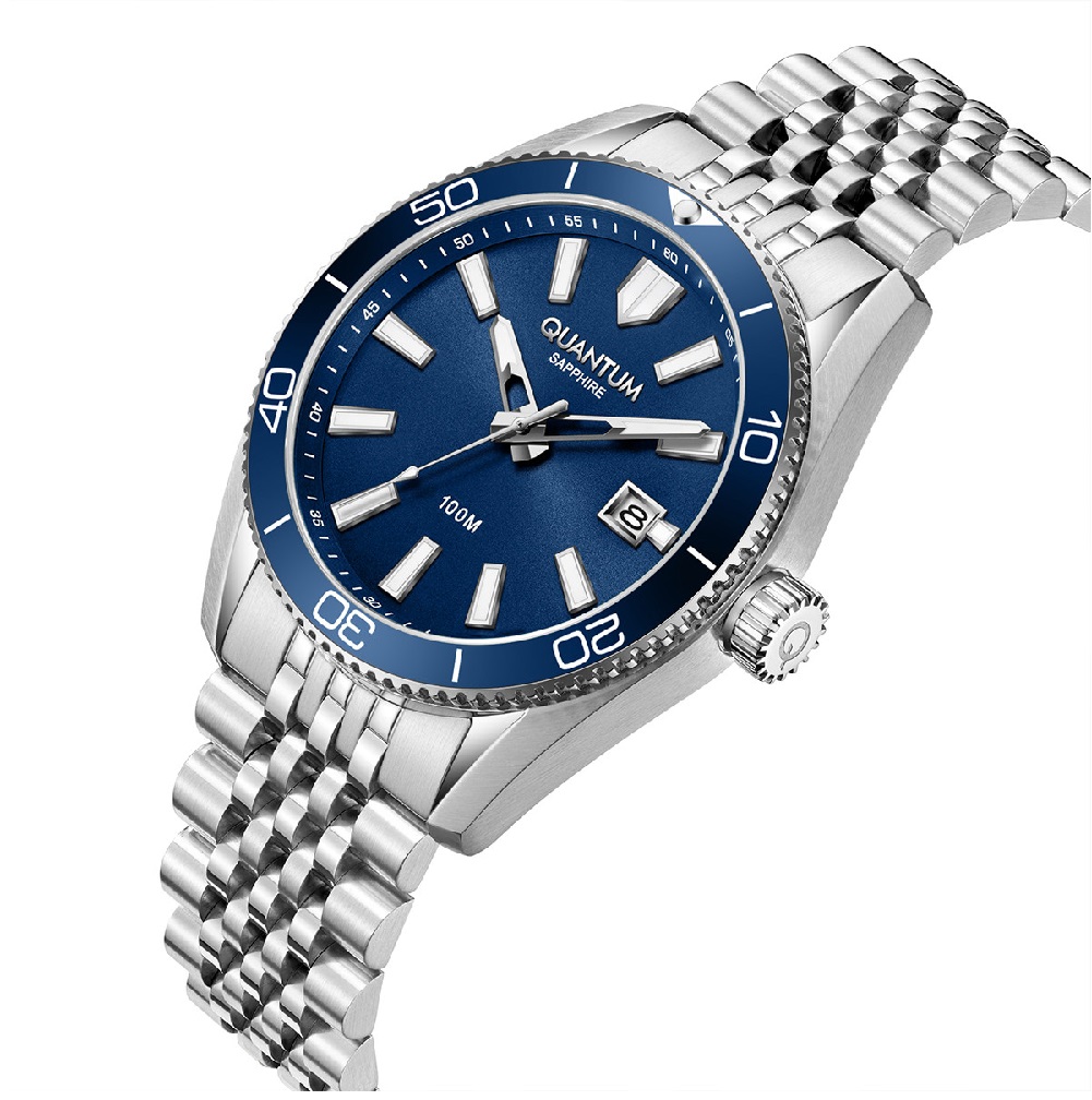 Κάσα: Ασημί ανοξείδωτο ατσάλι με μπλε στεφάνη