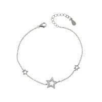 Ασημένιο βραχιόλι 925°, με αστέρια και λευκές πέτρες ζιργκόν.