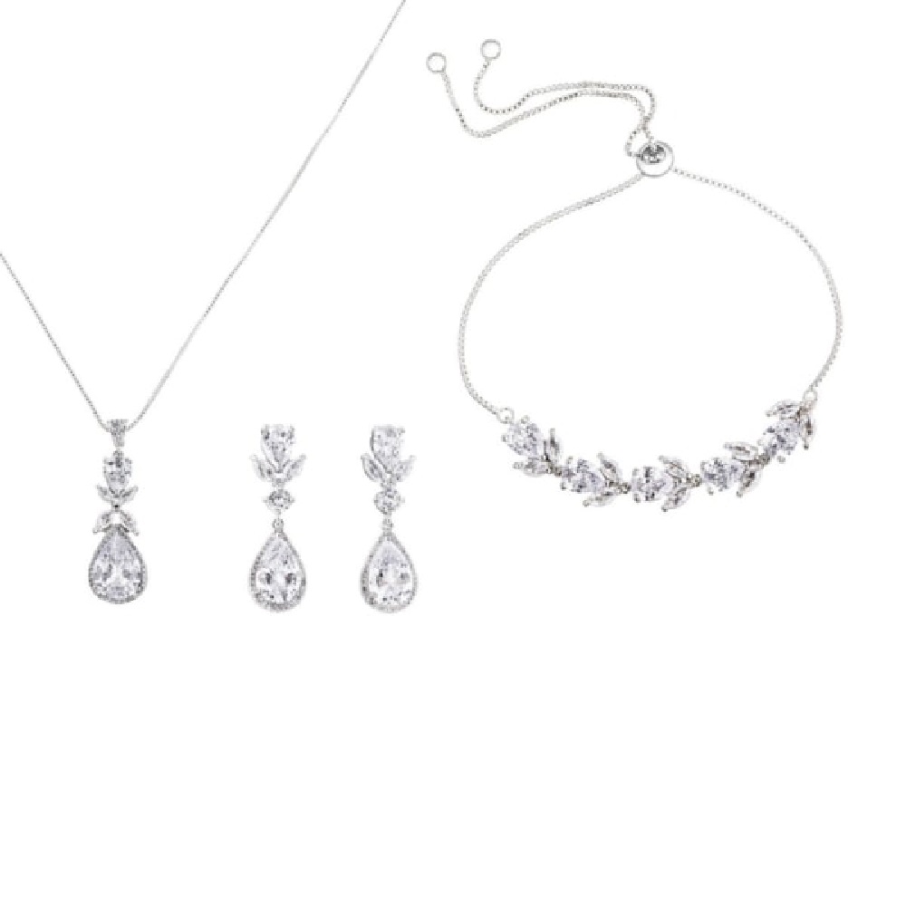 Σετ κοσμημάτων Gloria Hope, από ορείχαλκο με λευκές πέτρες ζιργκόν Swarovski σε ασημί χρώμα