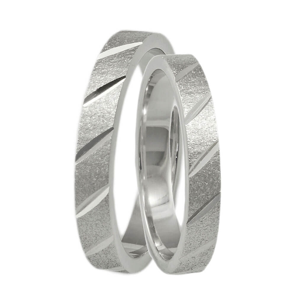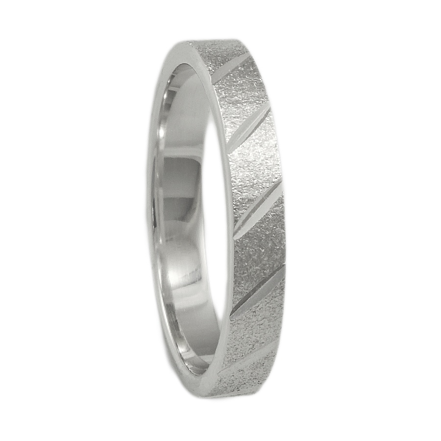 Λευκόχρυση βέρα γάμου και αρραβώνα 9 καρατίων και πλάτος 3mm, με πανέμορφο σχέδιο και εκλεπτυσμένη ματ επεξεργασία με διαγώνια λουστρέ κοψίματα.
