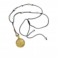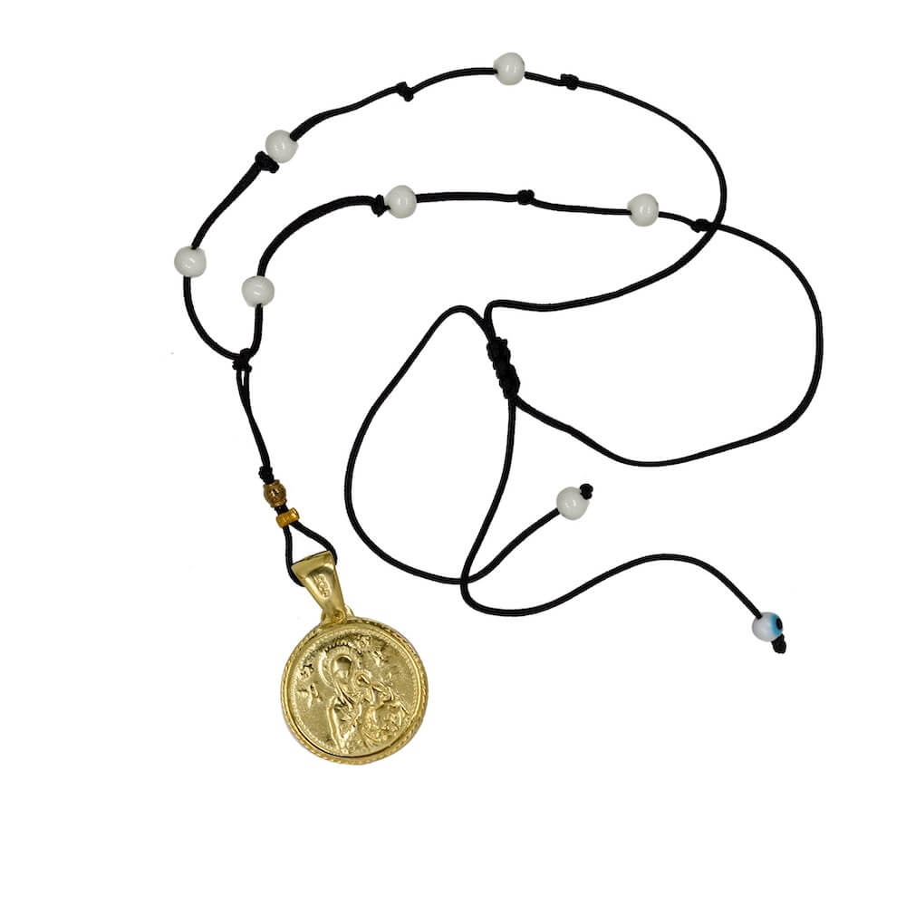Με μαύρο κορδόνι μακραμέ, όμορφα διακοσμημένο με λευκές χάντρες, χάντρα ματάκι και δεμένο με επιχρυσωμένο στοιχείο. Μπορεί να τοποθετηθεί στον καθρέπτη και γύρω από το λεβιέ. Ένα ανεκτίμητο δώρο, φυλαχτό για το αμάξι το δικό σας, και των αγαπημένων σας.