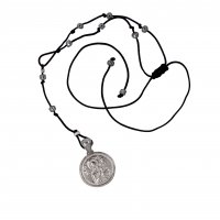 Με μαύρο κορδόνι μακραμέ, όμορφα διακοσμημένο με ασημένιες σαγρέ και λουστρέ μπίλιες και δεμένο με ασημένια στοιχεία. Μπορεί να τοποθετηθεί στον καθρέπτη και γύρω από το λεβιέ. Ένα ανεκτίμητο δώρο, φυλαχτό για το αμάξι το δικό σας, και των αγαπημένων σας.