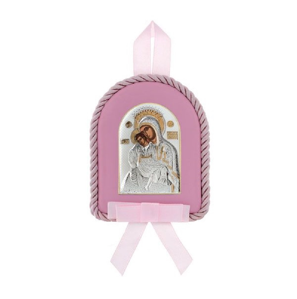 Ασημένια εικόνα κούνιας Παναγία και Χριστός για κορίτσι.