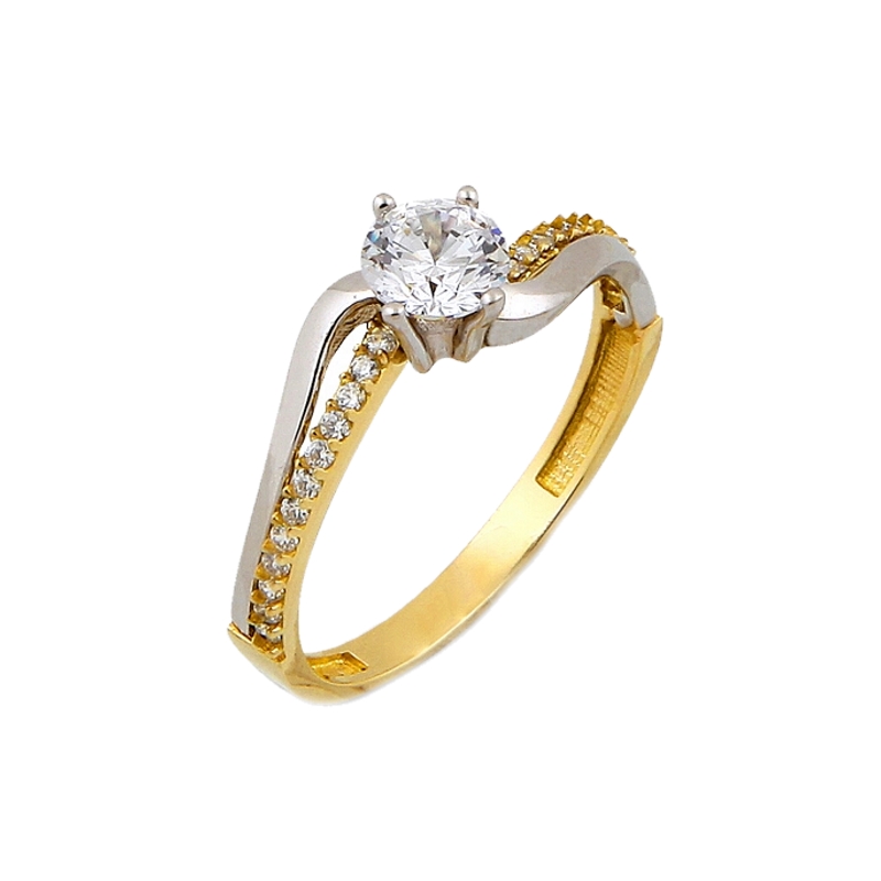 Μονόπετρο δακτυλίδι με ζιργκόν Swarovski® κίτρινο χρυσό 14 Καρατίων (585°) με λευκόχρυσες λεπτομέρειες γύρω απο τις πέτρες.