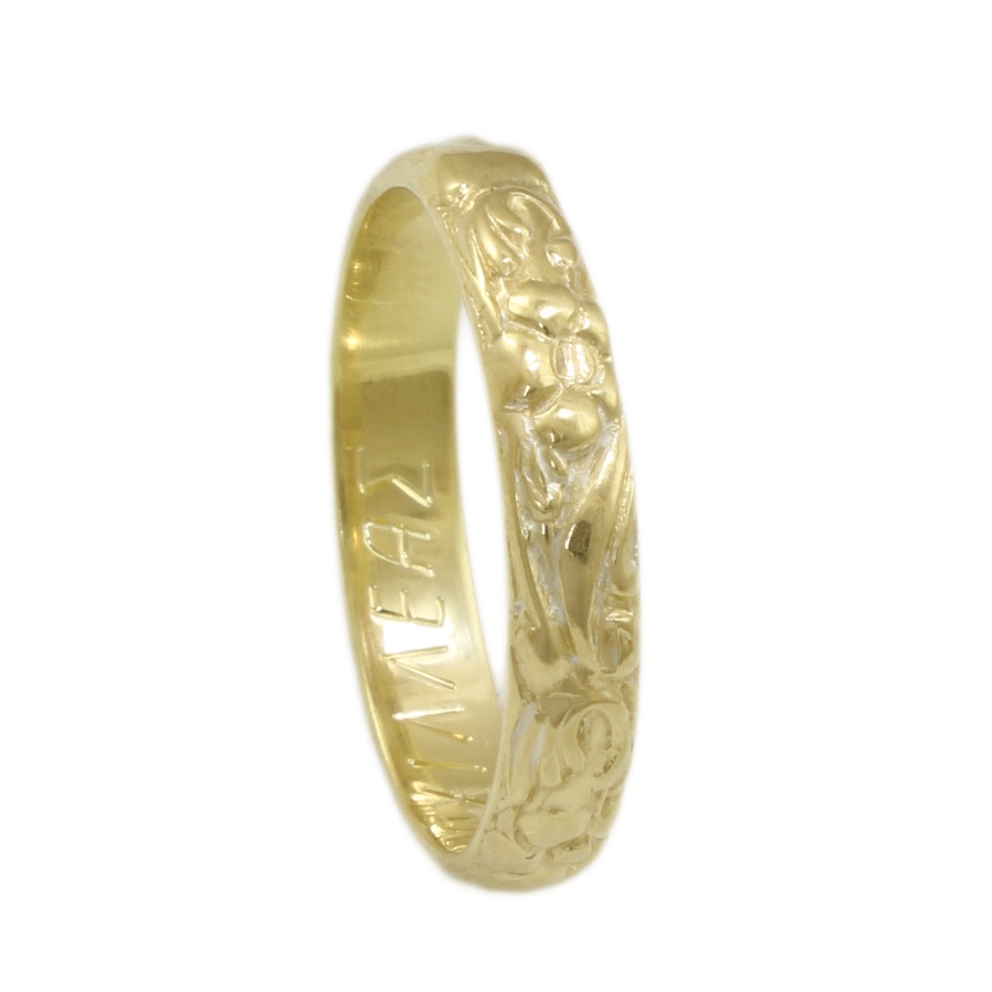 Ασημένια επιχρυσωμένη βέρα γάμου 925° στα 3mm πλάτος, με ανάγλυφα σχέδια και λουστρέ φινίρισμα που θα σας ξετρελάνει.