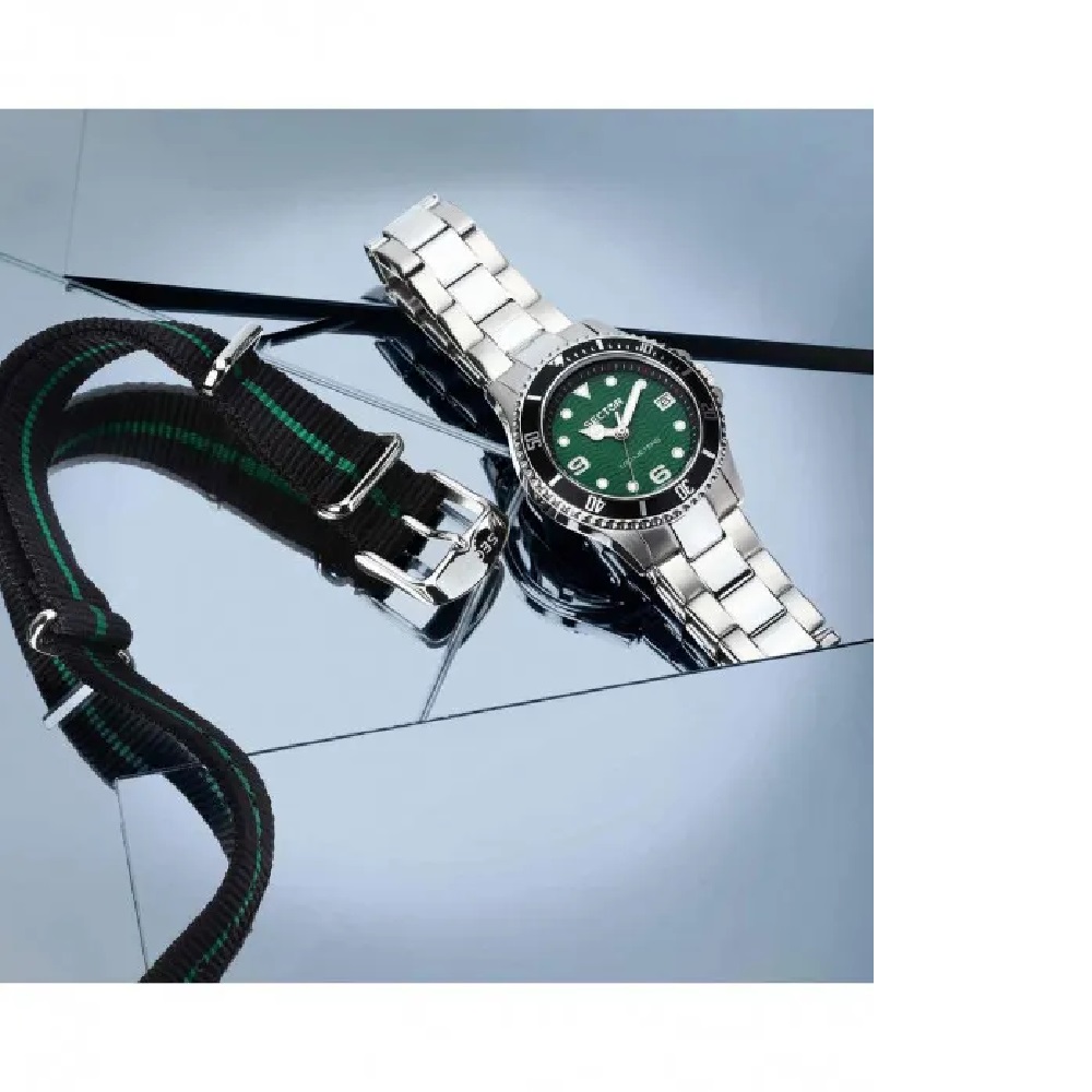 Διατίθεται σε κασετίνα με ένα επιπλέον  δίχρωμο μαύρο / πράσινο  λουράκι υφασμάτινο και εργαλείο τοποθέτησης του.