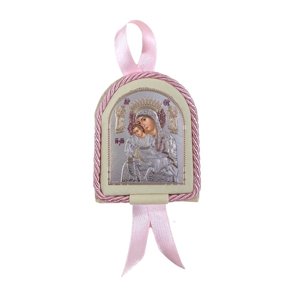 Ασημένιο παιδικό σετ 925 Αγγελάκια και εικόνα κούνιας με την Παναγία Άξιον Εστί.