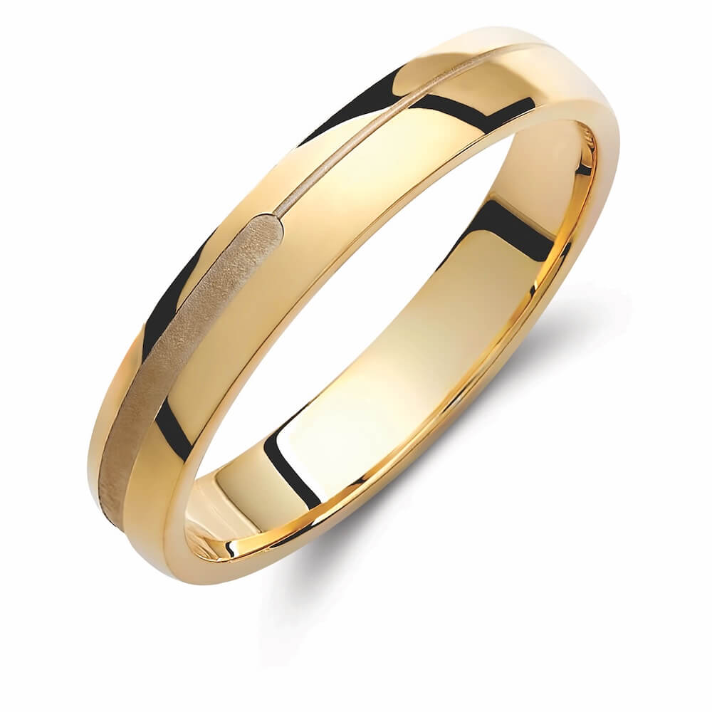 Χρυσή βέρα γάμου και αρραβώνα Valauro 8 καρατίων και πλάτος 4mm, με λουστρέ φινίρισμα και ματ σχέδιο.