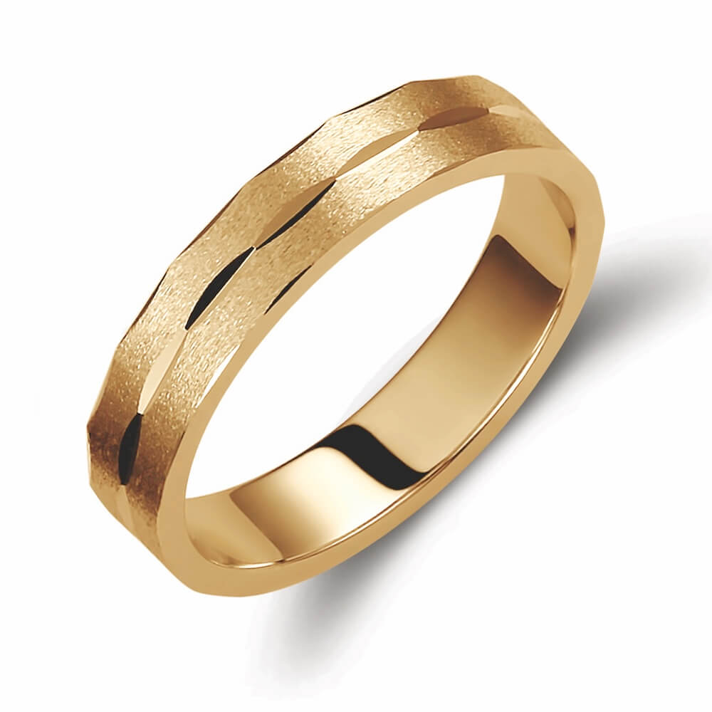 Χρυσή βέρα γάμου και αρραβώνα Valauro 8 καρατίων και πλάτος 4.5mm, κίτρινο, σαγρέ σε διαχρονική γραμμή.