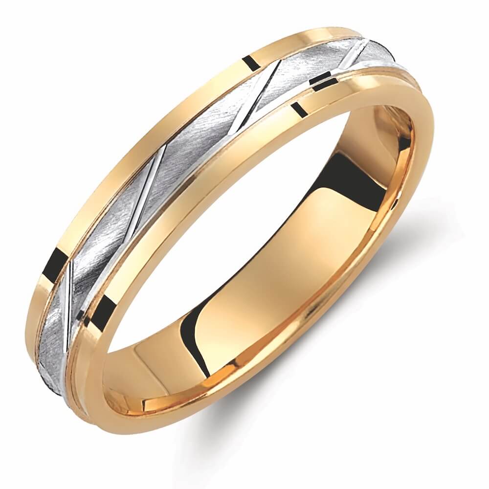 Χρυσή βέρα γάμου και αρραβώνα Valauro 8 καρατίων και πλάτος 3.5mm, σατινέ με λουστρέ γραμμή στη μέση.