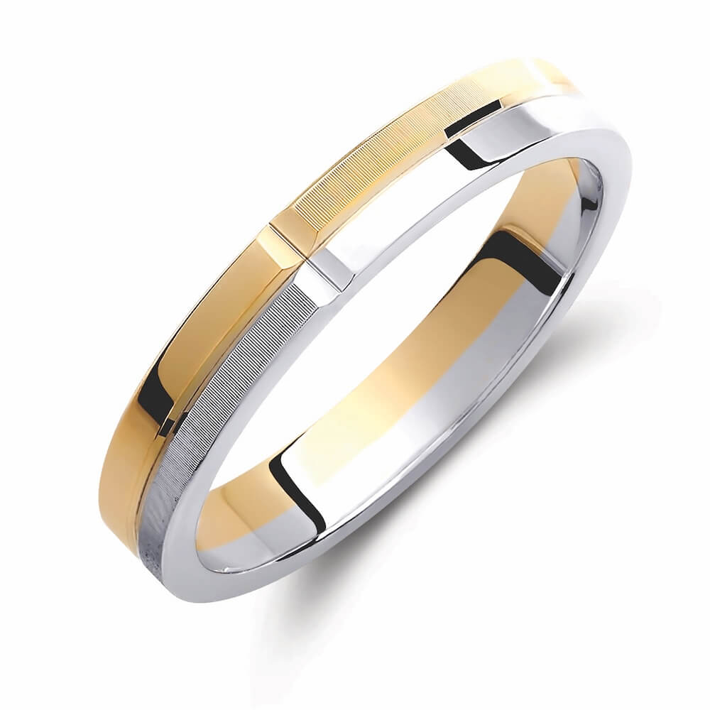 Χρυσή βέρα γάμου και αρραβώνα Valauro 8 καρατίων και πλάτος 3.5mm, λευκή, λουστρέ και ματ επιφάνεια, με ιδιαίτερο σχέδιο.