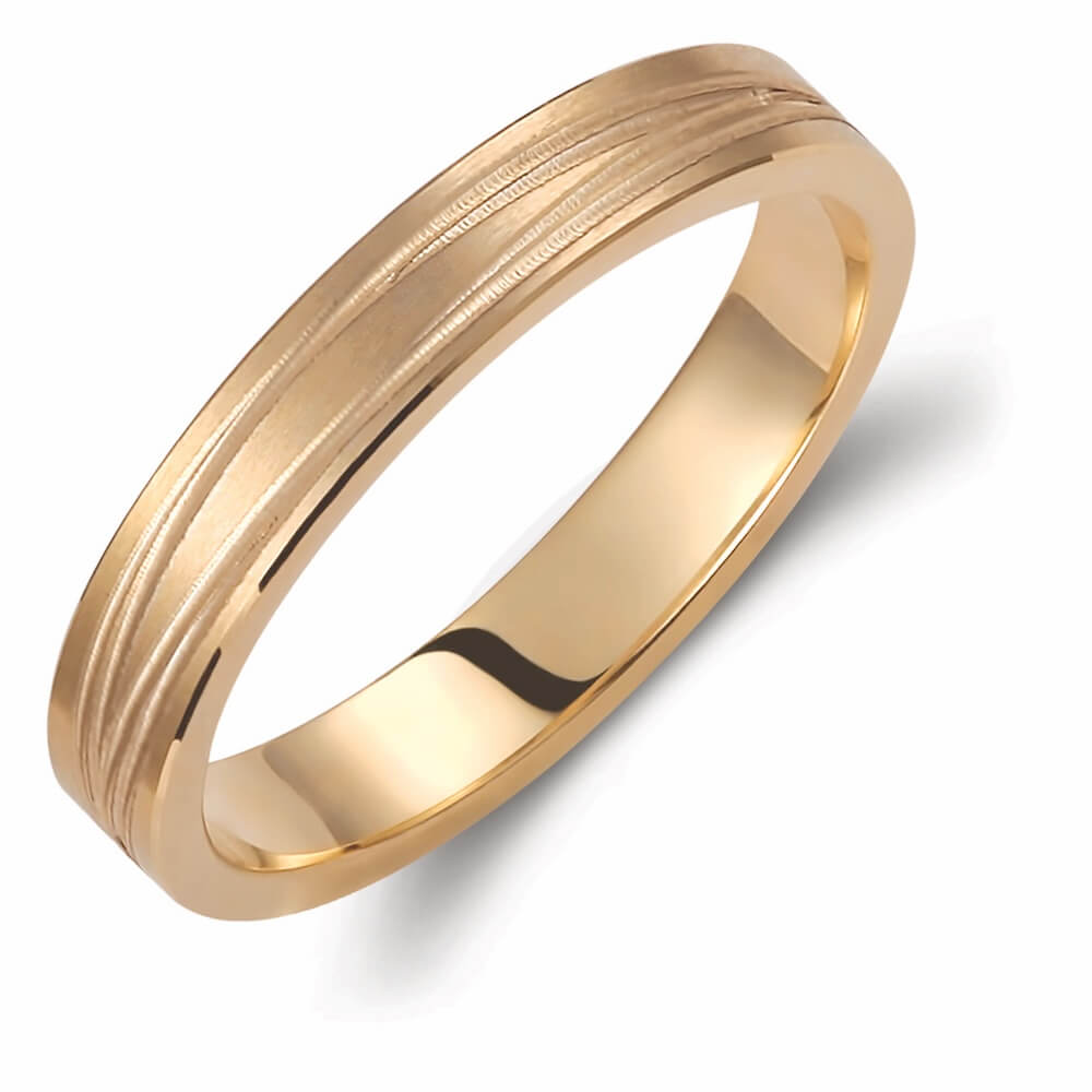 Χρυσή βέρα γάμου και αρραβώνα Valauro 8 καρατίων και πλάτος 3.5mm, με ματ φινίρισμα και ιδιαίτερο σχέδιο.