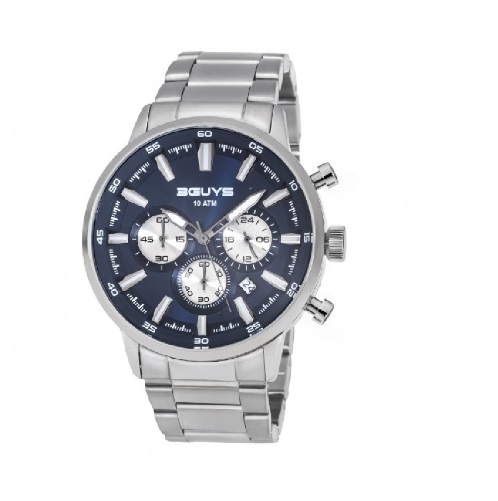 3Guys Men's Chronograph Watch Silver Stainless Steel Bracelet 3G27003