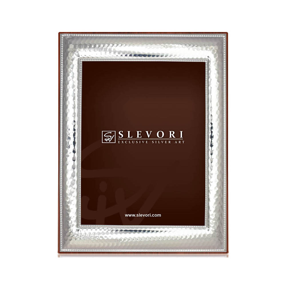 Κορνίζα από ασήμι 925, Slevori, σε σαγρέ σχέδιο και ξύλινη πλάτη σε καφέ χρώμα.