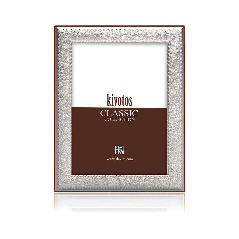 Κορνίζα από ασήμι 925, Slevori, με σαγρέ φινίρισμα και σιρίτι. Η πλάτη είναι ξύλινη σε καφέ χρώμα.