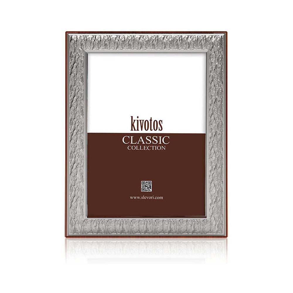 Κορνίζα από ασήμι 925, Slevori, σε ορθογώνιο σχήμα με εφέ "τσαλακώματος"  και ξύλινη πλάτη σε καφέ χρώμα.