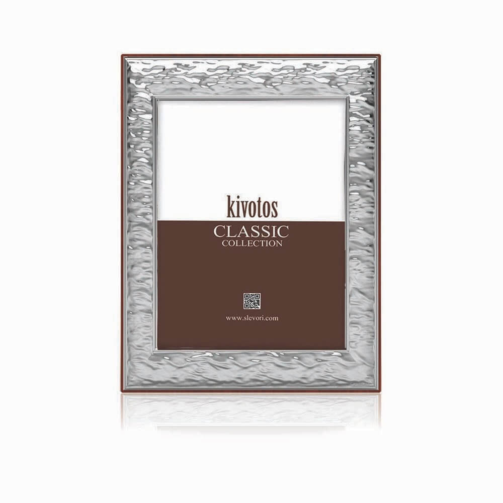 Κορνίζα από ασήμι 925, Slevori, σε ορθογώνιο σχήμα με σφυρήλατο φινίρισμα και σαγρέ και ξύλινη πλάτη σε καφέ χρώμα.