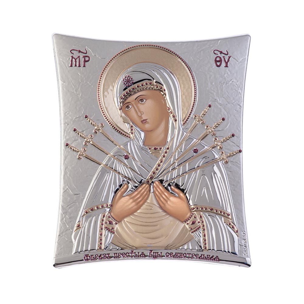Ασημένια εκκλησιαστική εικόνα, ασύμμετρη, που απεικονίζει την Παναγία Γιάτρισσα.