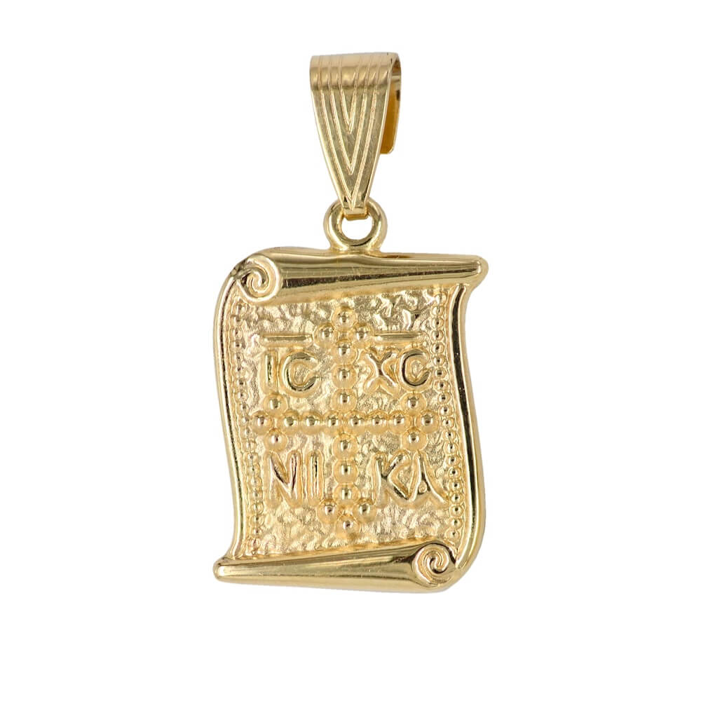 Χρυσό μενταγιόν 9 Καρατίων με ανάγλυφες μορφές ΙΧΝΚ σε σχήμα ορθογώνιο κυματιστό.
