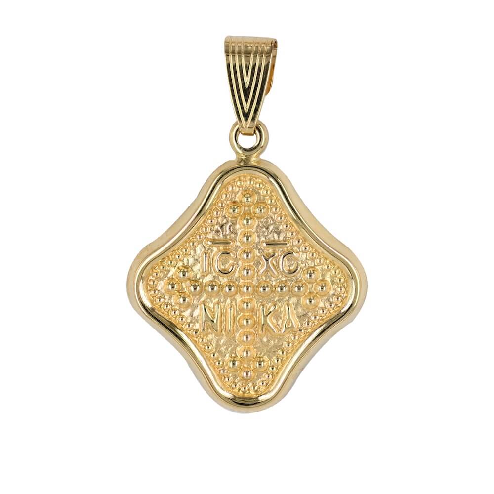 Χρυσό μενταγιόν 9 Καρατίων με ανάγλυφες μορφές ΙΧΝΚ σε σχήμα ρόμβος.