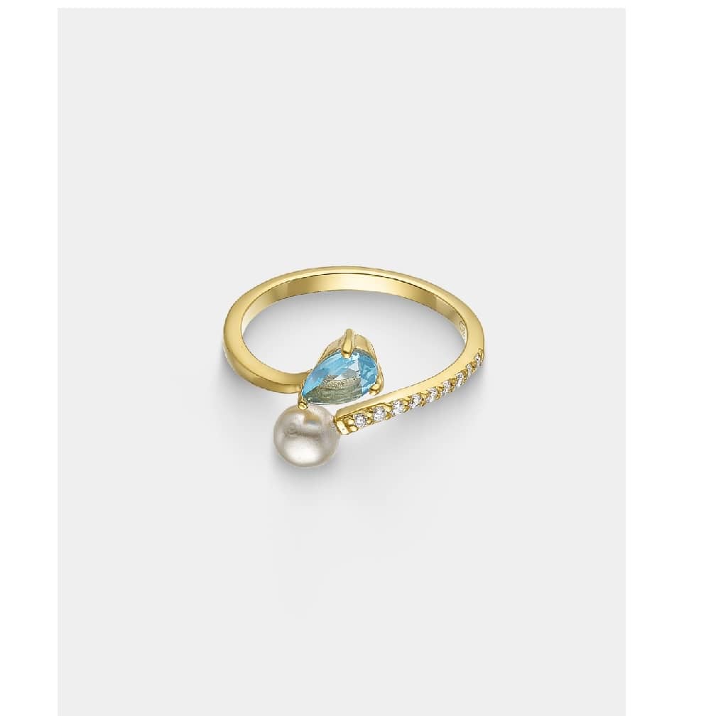 Vogue Δαχτυλίδι με λευκό μαργαριτάρι και γαλάζιο zircon από επιχρυσωμένο Ασήμι 925° 20171002141