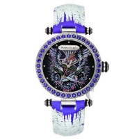 Marc Ecko Crystal Black Graffiti, Watch for Men, White / Blue Leather Strap E15087M1