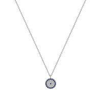 Ασημένιο κολιέ  925 στόχος με λευκές και μπλέ πέτρες ζιργκόν.