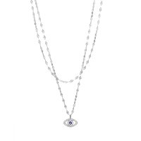 Ασημένιο κολιέ 925, διπλή αλυσίδα και ματάκι, με μπλέ κεντρική πέτρα και μικρότερες λευκές πέτρες ζιργκόν.