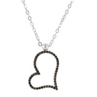 Ασημένιο κολιε 925, επιπλατινωμένο, με μοτιφ καρδιά με μαύρες πέτρες.