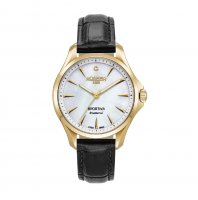 Επιπλέον Χαρακτηριστικά/Λειτουργίες: GENUINE DIAMONDS, White mop dial, leather strap