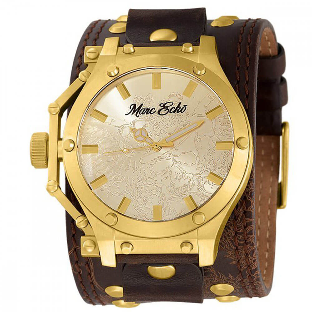 Marc Ecko Gold Aril, Watch for Men, Brown Leather Strap E20055G1