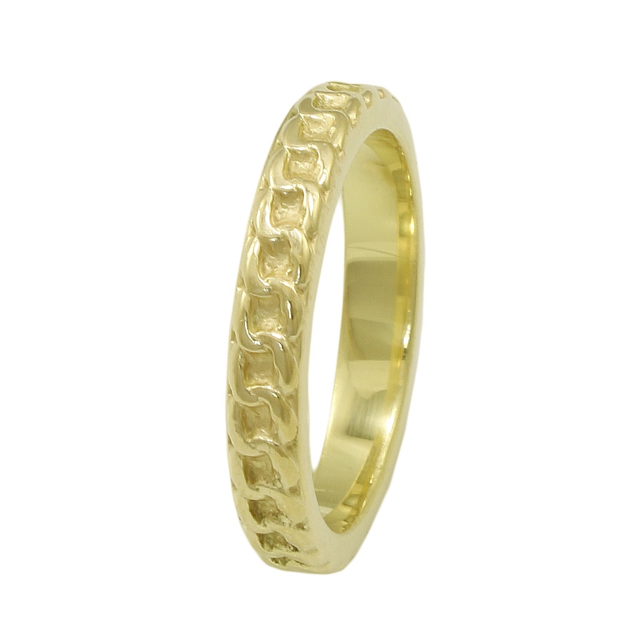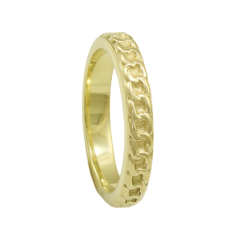 Ασημένια επιχρυσωμένη βέρα – δαχτυλίδι 925°, σε σχήμα που μοιάζει με αλυσίδα και λουστρέ φινίρισμα στα 3mm πλάτος. Μία ιδιαίτερη βέρα για μία τόσο ξεχωριστή στιγμή στη ζωή σας!