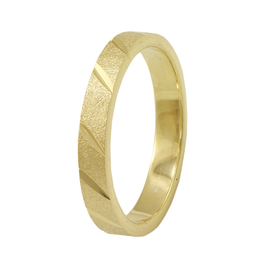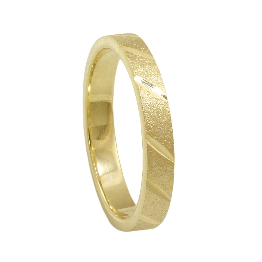 Ασημένια επιχρυσωμένη βέρα – δαχτυλίδι 925° στα 3mm πλάτος, με πανέμορφο σχέδιο και εκλεπτυσμένη ματ επεξεργασία με διαγώνια λουστρέ κοψίματα.