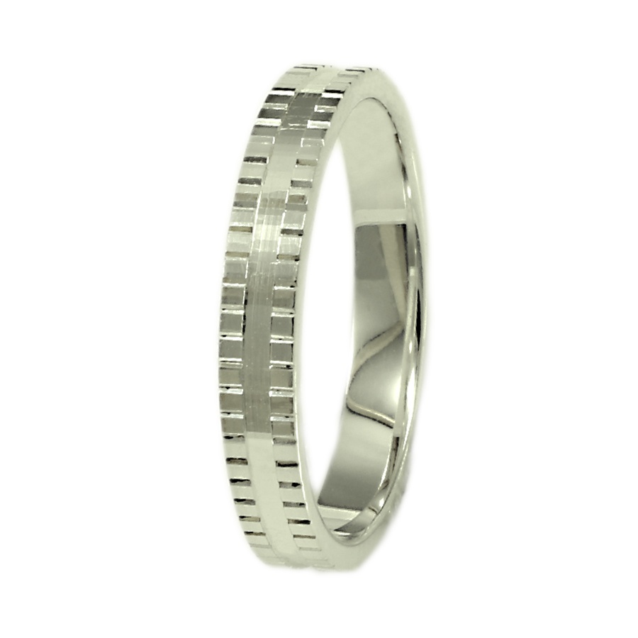 Λευκόχρυση βέρα γάμου και αρραβώνα Μatteo 9 καρατίων στα 3mm, πρωτότυπο design, λουστρέ με εγκοπές στην επιφάνειά της και εσωτερικό κανάλι στο κέντρο. Μία βέρα που παρά το μοντέρνο σχεδιασμό της, δεν θα χάσει ποτέ τη διαχρονικότητά της!