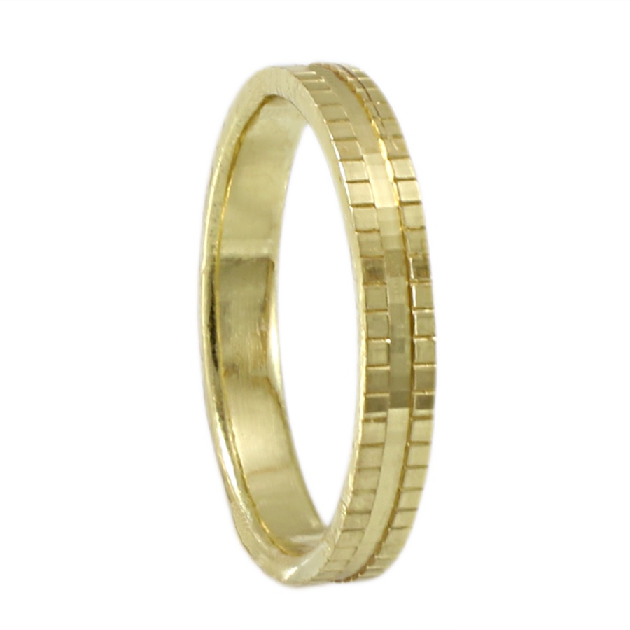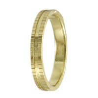 Χρυσή βέρα γάμου και αρραβώνα 9 καρατίων στα 3mm, πρωτότυπο design, λουστρέ με εγκοπές στην επιφάνειά της και εσωτερικό κανάλι στο κέντρο. Μία βέρα που παρά το μοντέρνο σχεδιασμό της, δεν θα χάσει ποτέ τη διαχρονικότητά της!