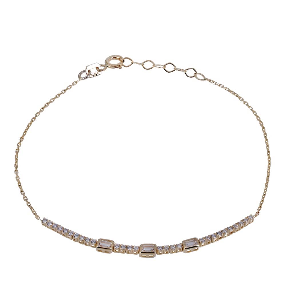 « Προηγούμενο προϊόνΣετ χρυσό 14 Καρατίων, με ιδιαίτερο μοντέρνο σχέδιο από μονή σειρά με ζιργκόν Swarovski με ενδιάμεσες πέτρες ζιργκόν Swarovski σε ορθογώνιο σχήμα .