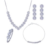 Σετ λευκόχρυσο 14 Καρατίων, με ιδιαίτερο μοντέρνο σχέδιο με μονή σειρά ροζέτα πέτρες ζιργκόν Swarovski.