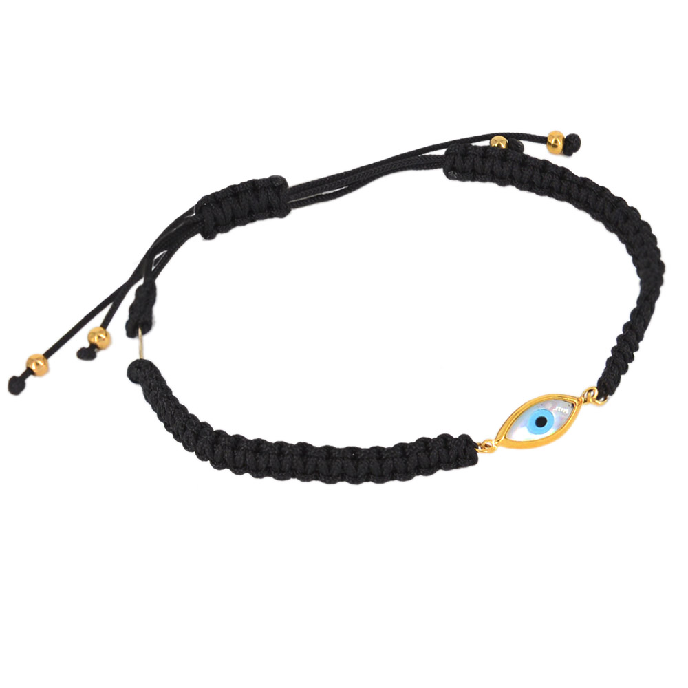 Βραχιόλι μακραμέ μαύρο με χρυσό στοιχείο ματάκι 14 Καρατίων.