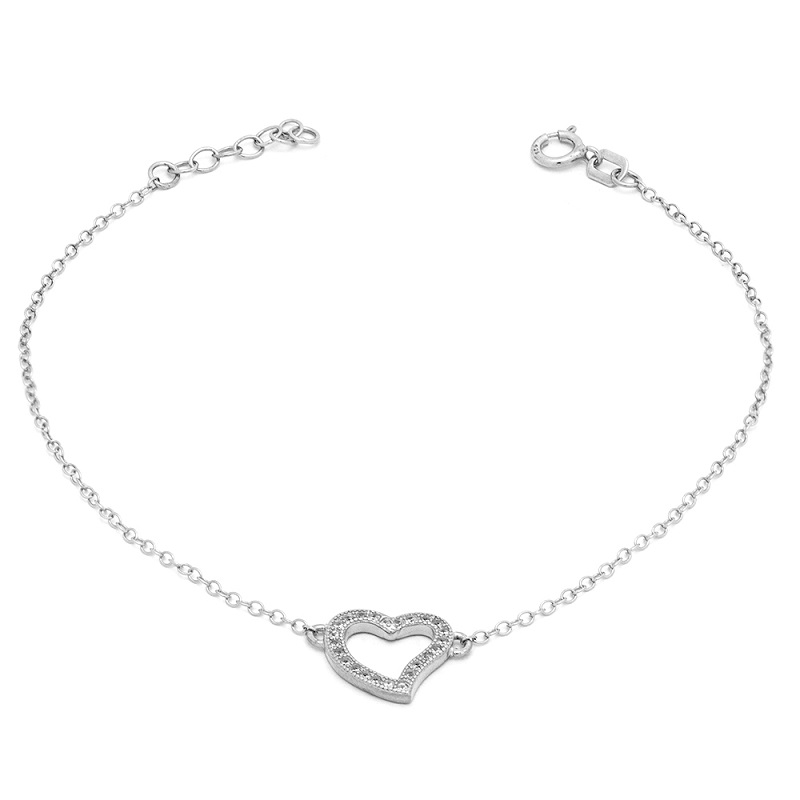 Ασημένιο βραχιόλι 925°, ροζέτα δάκρυ με κεντρική λευκή πέτρα και λευκές πέτρες ζιργκόν στο περίγραμμα του.