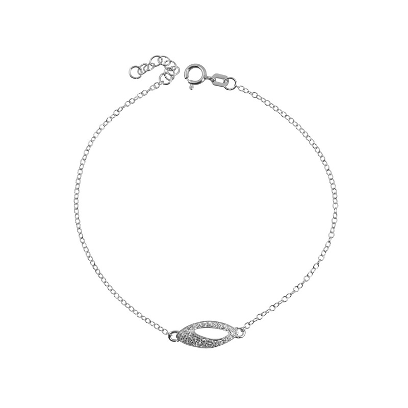 Ασημένιο βραχιόλι 925°, σταγόνα διακοσμημένη με λευκές πέτρες ζιργκόν.