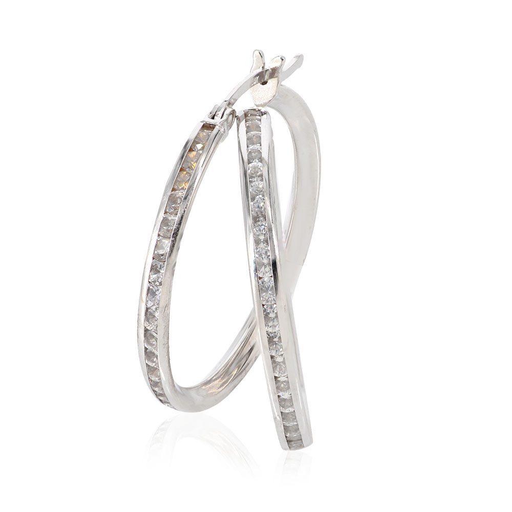 Λευκόχρυσα σκουλαρίκια 14 Καρατίων,κρίκοι με λευκές πέτρες ζιργκόν Swarovski®.