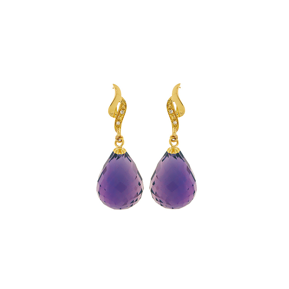 Χρυσά Σκουλαρίκια 18 Καράτια με Αμέθυστο & Διαμάντια