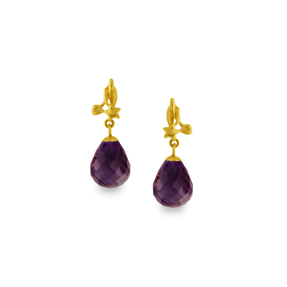 Σκουλαρίκια με αμέθυστο σε χρυσή βάση 18 Καρατίων.