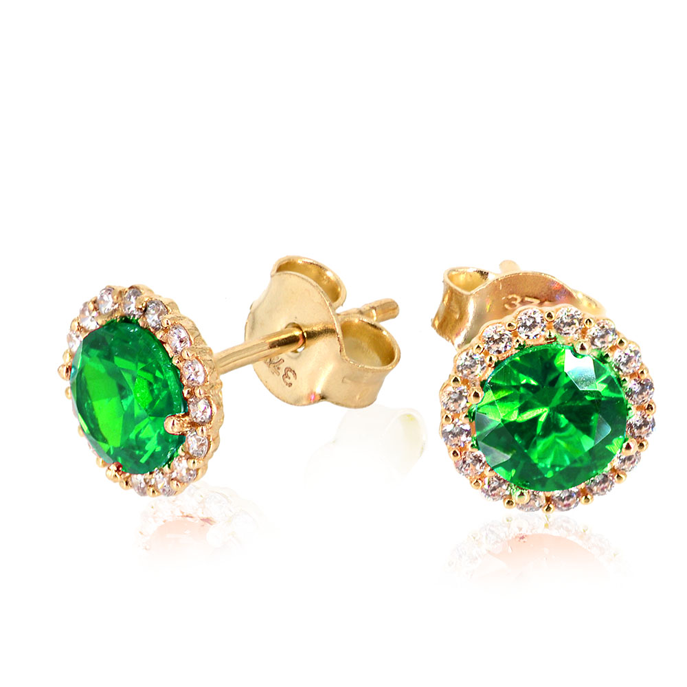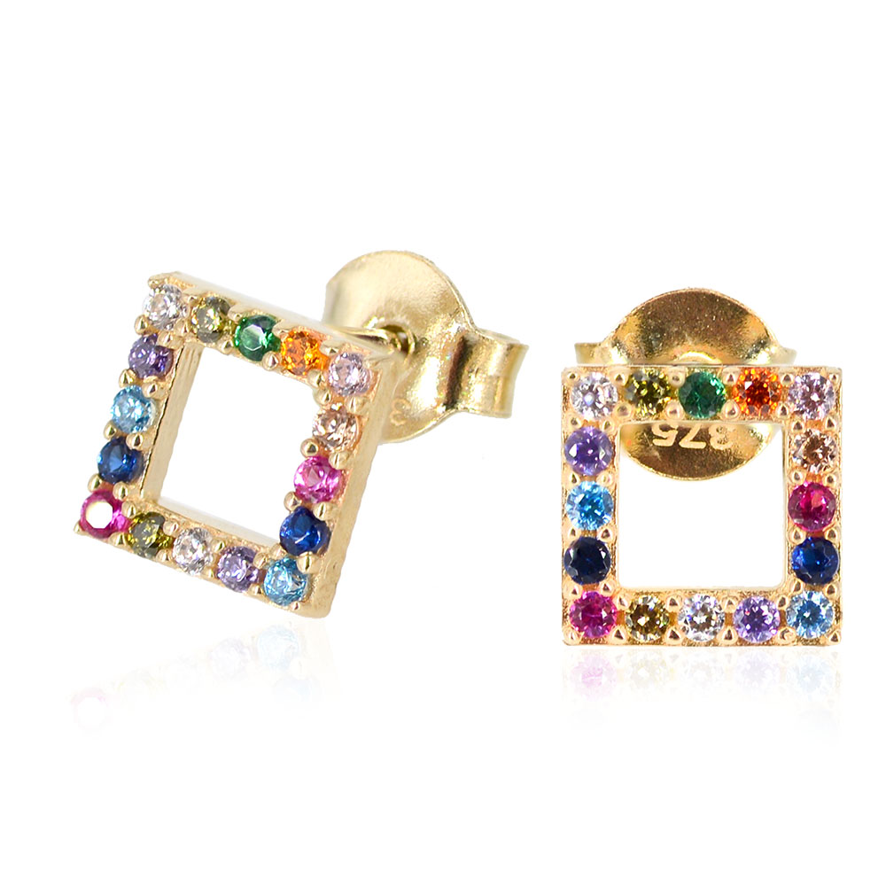 Χρυσά σκουλαρίκια καρφωτά 9 Καρατίων,τετράγωνο με χρωματιστές πέτρες ζιργκόν.